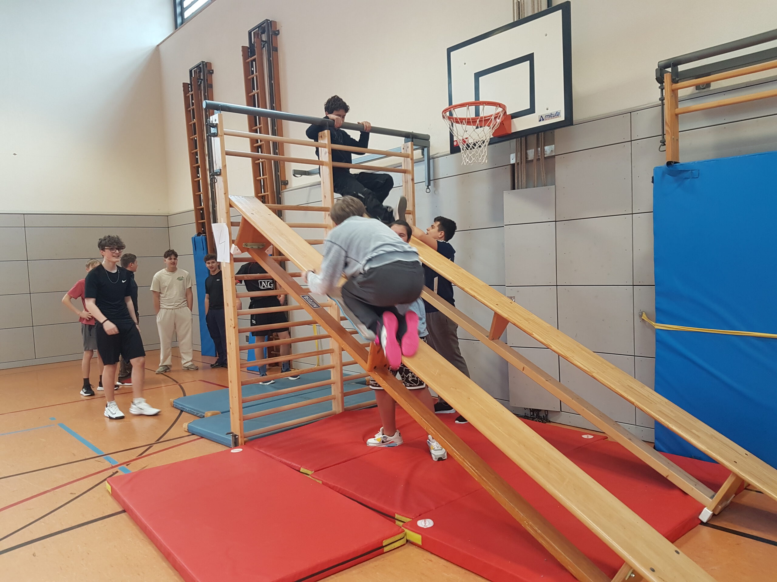 Der Tag war sportlich anstrengend, aber genau das machte ihn besonders: Viele Schüler:innen entwickelten sichtbaren Ehrgeiz, auch schwierige Touren zu meistern. Es zeigte sich, dass die Klasse nicht nur sportbegeistert ist, sondern auch bereit, neue Herausforderungen anzunehmen. Hinzu kommt, dass solche Erfahrungen über das rein Sportliche hinausgehen: Beim Bouldern geht es darum, Lösungen zu finden, sich gegenseitig zu unterstützen und Grenzen auszuloten – Fähigkeiten, die auch im schulischen Alltag relevant sind.
