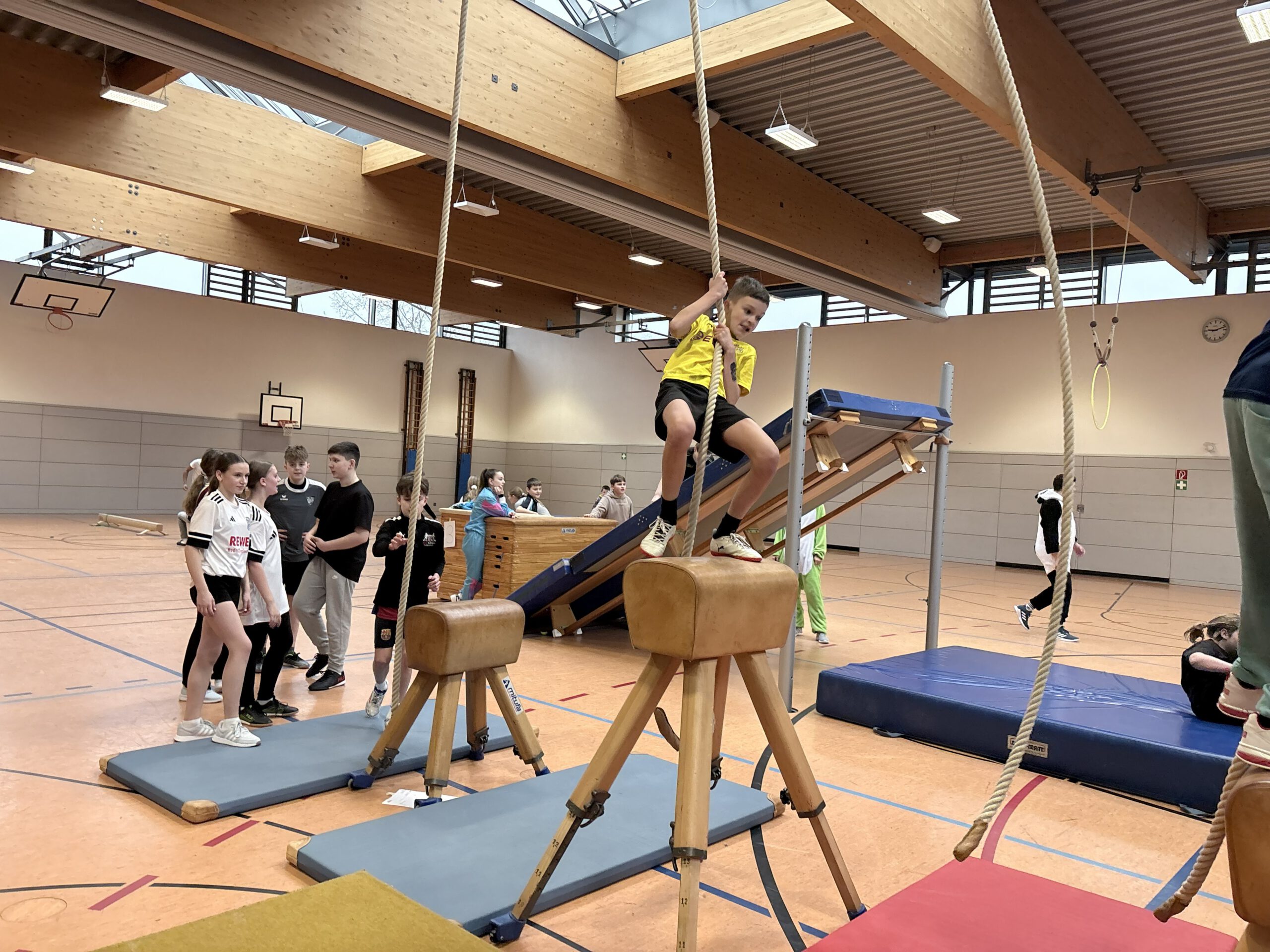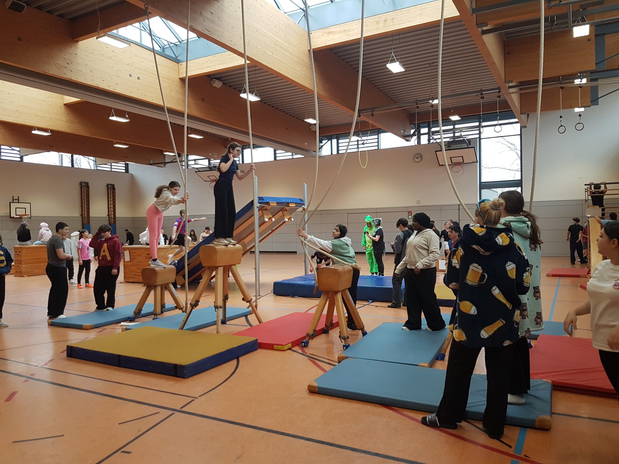 Kurz vor den Faschingsferien verwandelte sich unsere Turnhalle in eine bunte Bewegungslandschaft. Beim diesjährigen Gaudisportfest am 11.02.2026 konnten die Schülerinnen und Schüler der 5. bis 9. Klassen ihre Geschicklichkeit, ihren Mut, Teamgeist und vor allem ihre Freude an Bewegung unter Beweis stellen.